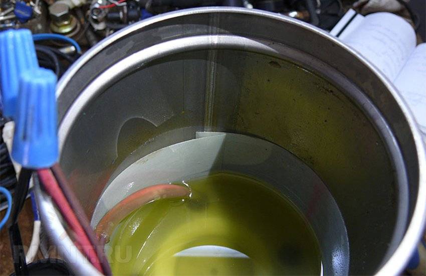 Все двигатели скважинных насосов наполнены маслом, выполняющим смазывающую, охлаждающую и диэлектрическую функции. Масло используется специальное пищевое, но оно имеется в свободной продаже. Признаками низкого качества может быть мутный цвет масла в случае смешивания с водой, потемнение или наличие механических примесей, а также недостаточный уровень. Если масло в норме, его нужно слить в чистую сухую ёмкость, оставив корпус мотора на 15–20 минут, пока остатки полностью не стекут со стенок. Недостаточная наполненность двигателя маслом говорит об износе сальниковых уплотнений.
