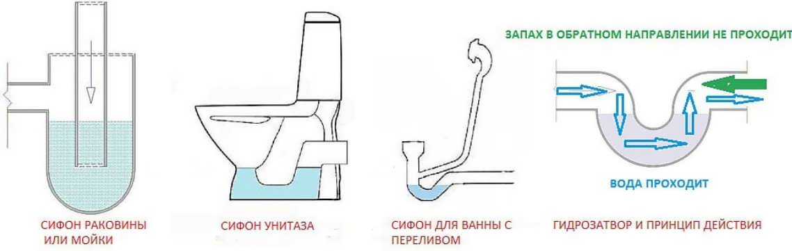 Каждое сантехническое устройство имеет сифон, благодаря которому создается гидрозатвор. Эта водяная пробка не дает проникнуть вони из сливной трубы. Особую роль играет сифон, через который идет слив в общий стояк. Давление в нем обеспечивается соединением с фановой трубой, выведенной на крышу дома. С ее помощью происходит выброс биогаза в атмосферу.