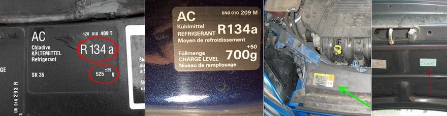 Ранее для заправки кондиционера использовали фторсодержащий фреон R-12, хоть он и более продуктивный, но из-за того, что очень вредный, в 1992 г. его применение запретили, и заменили на хладагент R-134а. Поэтому владельцам автомобилей с кондиционером выпускавшимся до 1992 года выпуска, приходится либо самостоятельно заправлять, либо переходить тоже на новый вид фреона. Ведь хотя они и работают на R-12, но на сервисных станциях заправка хлорфторосодержащего газа запрещена. Так что все новые модели машин с автомобильным кондиционером заправлены фреоном R-134а. Кстати, какой фреон в автомобильном кондиционере конкретной системы, можно увидеть на табличке, подняв капот. Хотя перепутать сложно, ведь даже заправочные штуцеры разные (в трубке под R-134а он выше и с большим диаметром). На наклейке под капотом также можно увидеть и норму заправки фреона в автокондиционере.