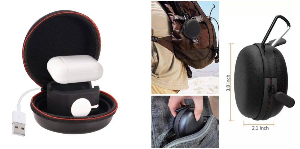 Для тех, кто постоянно путешествует, могут приобрести — этот дорожный футляр, в котором есть место для зарядного кабеля для часов и наушников Apple AirPods. Также чехол можно использовать как портативную подставку для зарядки. Вы можете вложить туда зарядный кабель, заранее подключив его к сети и класть вкчfcs на зарядку.