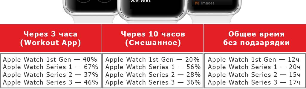 Также Leica Dad предлагает сравнить версии 42-мм и 38-мм на примере поколения Series 3. Изначально гаджет включён в режиме мобильного интернета в LTE-сети в течение 4 часов до фиксации процента, а затем переключается в более энергоёмкую Wi-Fi-сеть и через 8 часов вновь отмечается уровень процента. Итак, сколько держат заряд Apple Watch 3 с разными размерами корпуса?