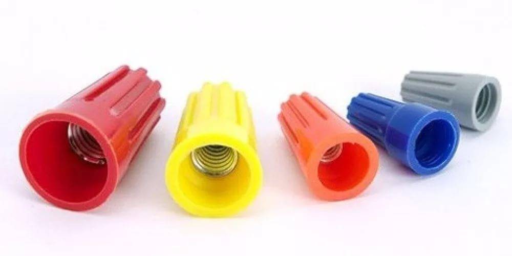 Принцип действия прост. Имеется обычная скрутка из оголенных жил проводов. Причем все провода должны быть из однородного металла. Чтобы избежать окисления, скрутку желательно обработать пастой. Внутри пластикового колпачка находится конусообразная пружина. Она-то и создаст прочное соединение. Колпачок надевают на скрутку, накручивая по часовой стрелке. В это время пружина витками вдавливает жилы, создавая прочный контакт. Если соединяется два одинаковые по толщине провода, то их можно не скручивать. Оголенные концы с усилием вставляют внутрь колпачка и вращают его. Пружина внутри сама сделает свое дело.