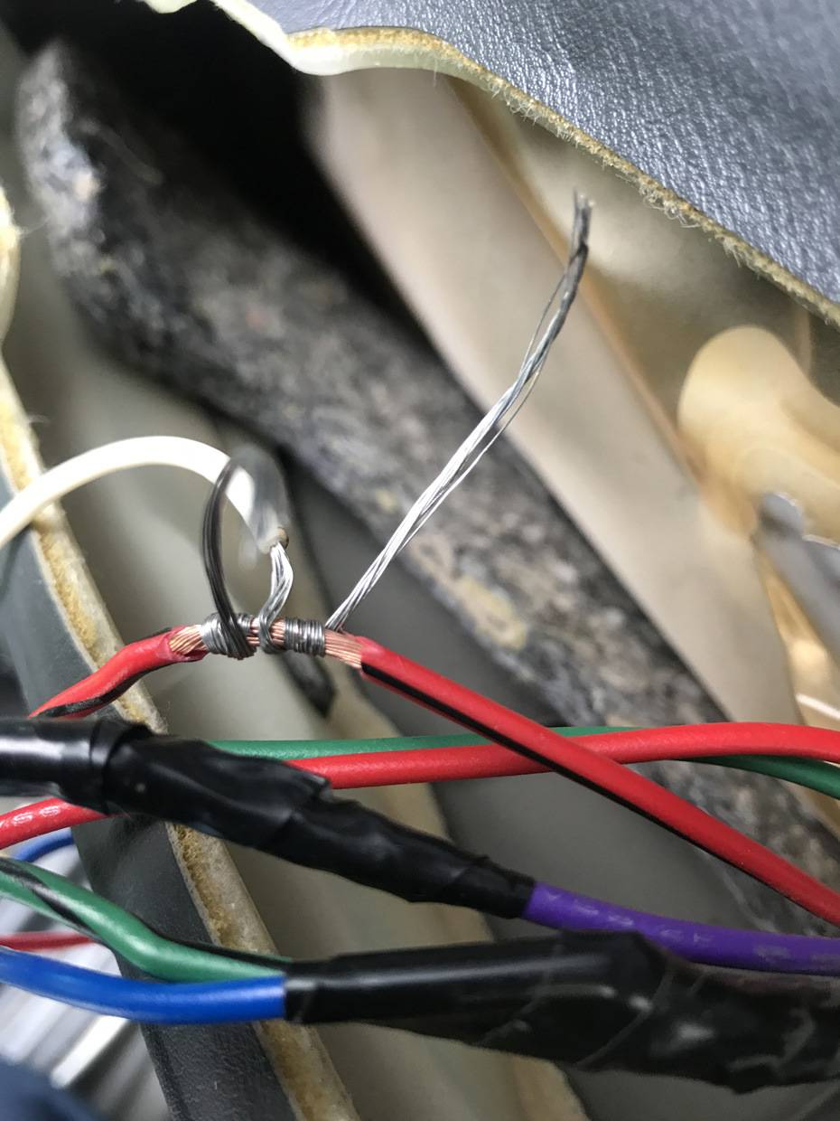 1Зачищал в нужном месте изоляцию и делал в проводниках окошко