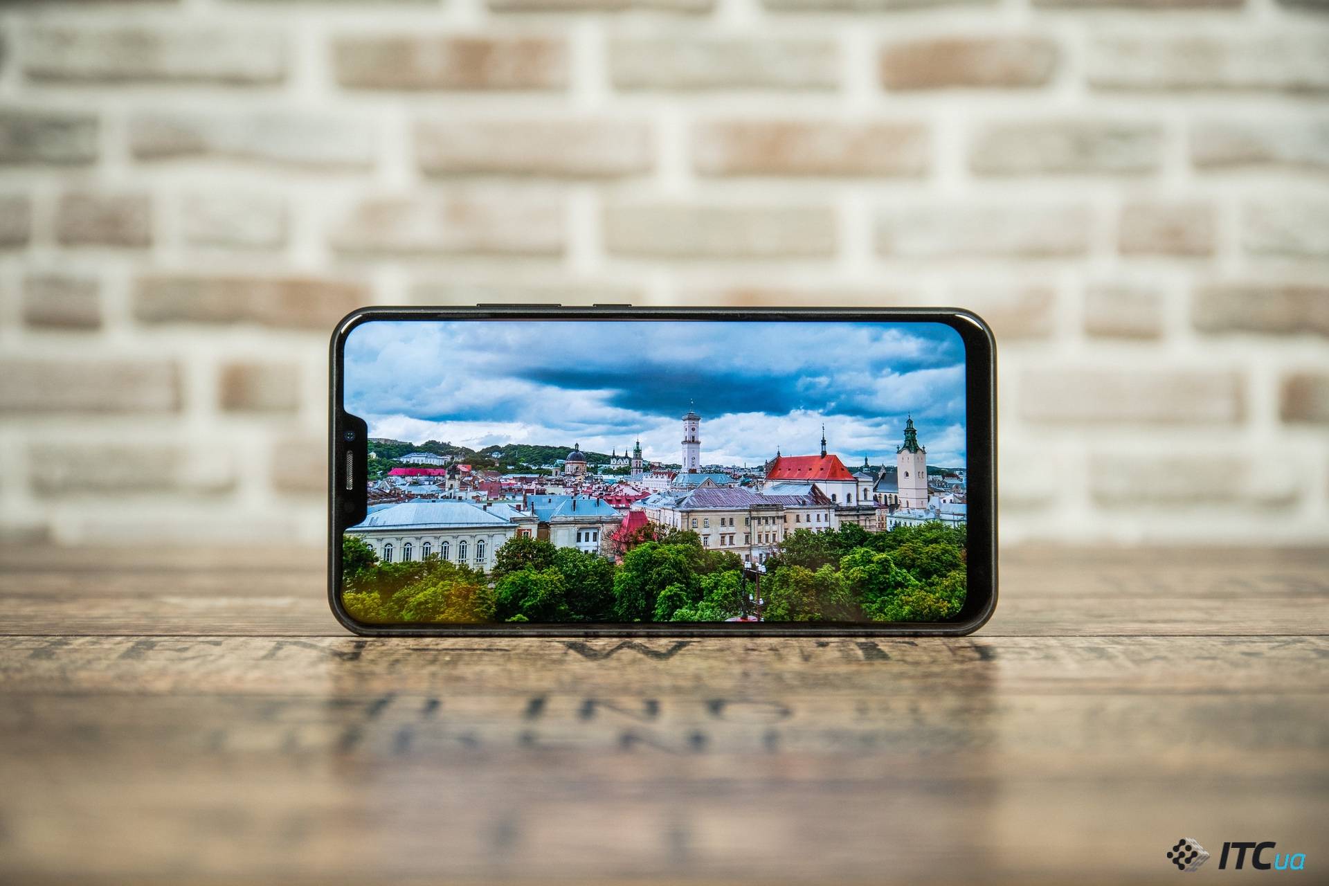 Гаджет снабжен 6,2 дюймовой IPS-матрицей с разрешением 1080*2246 с новомодным соотношением сторон 19:9. Также есть вырез в верхней части и скруглённые углы