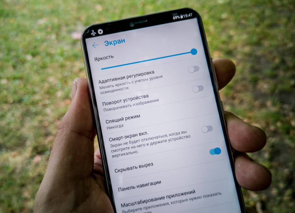 Автоматическая яркость работает корректно. В настройках можно активировать фильтр синего цвета — режим защиты зрения, который включается вручную или по расписанию и тонко настроить температуру и цветовой режим экрана. Также имеется зимний режим работы в перчатках.
